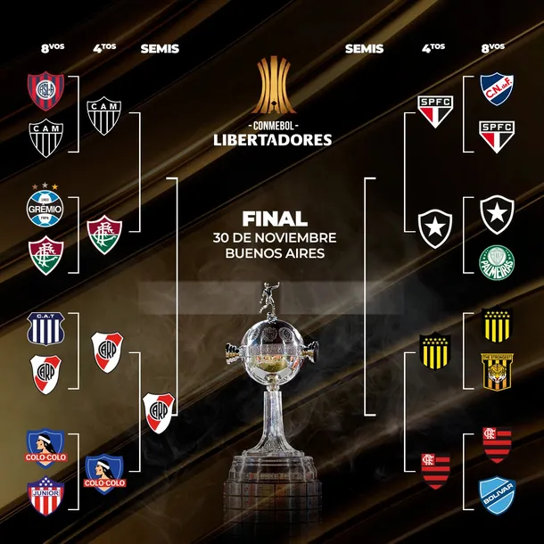 Los partidos de ida de las semifinales se disputarán entre el 22 y el 24 de octubre la ida y el 29 y el 31 del mismo mes la vuelta. Por su parte, la gran final, en Buenos Aires, en estadio a confirmar, será el 30 de noviembre.