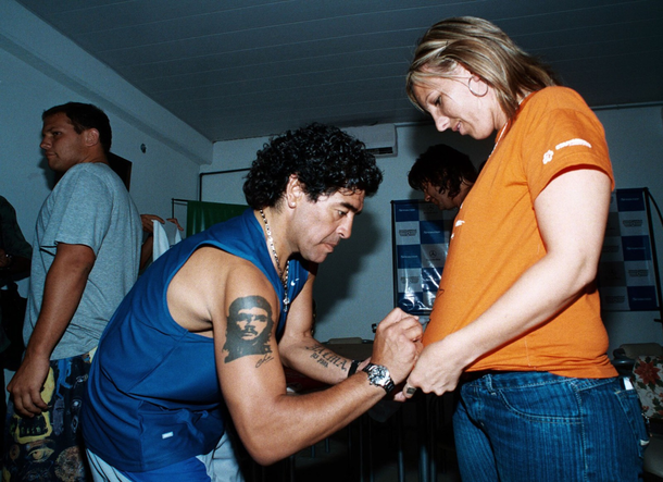 El Diez pasó horas en el lugar. “Debe haber firmado mil remeras y se sacó fotos con todo el mundo, fue muy generoso”, recordó Digiovanni.