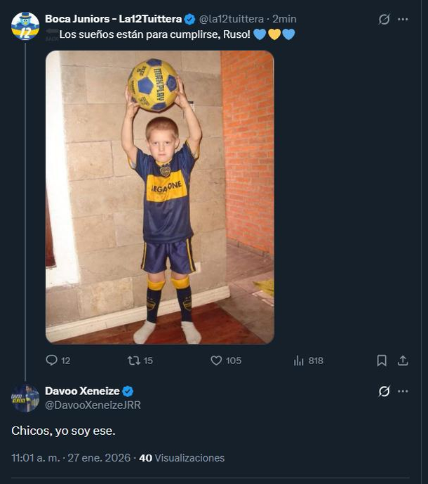 El divertido cruce entre Davoo Xeneize y una cuenta de Boca por el anuncio de Santiago Ascacibar