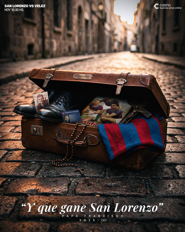 La campaña institucional en redes sociales también conmovió a los fanáticos del Ciclón. A la medianoche, el club había publicado una imagen que recrea la histórica valija con la que el entonces Cardenal viajó a Roma en 2013 para el Cónclave. Dentro de la maleta, rotulada con el nombre de J.M. Bergoglio, se podría ver objetos que definen su identidad y su pasión por el club, como sus clásicos zapatos negros, un rosario, su carnet de socio y una vieja edición de la revista El Gráfico que retrata al famoso "Terceto de Oro" de 1946. La gráfica cerraba con la frase que Francisco popularizó ante cada delegación que lo visitaba en el Vaticano: "Y que gane San Lorenzo".