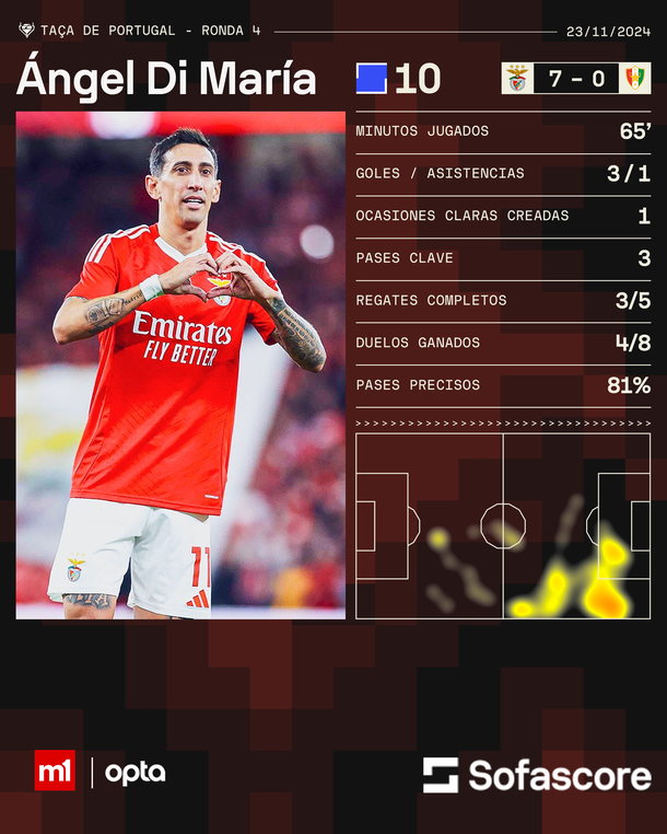 Las estadísticas de Ángel Di María en el triunfo del Benfica