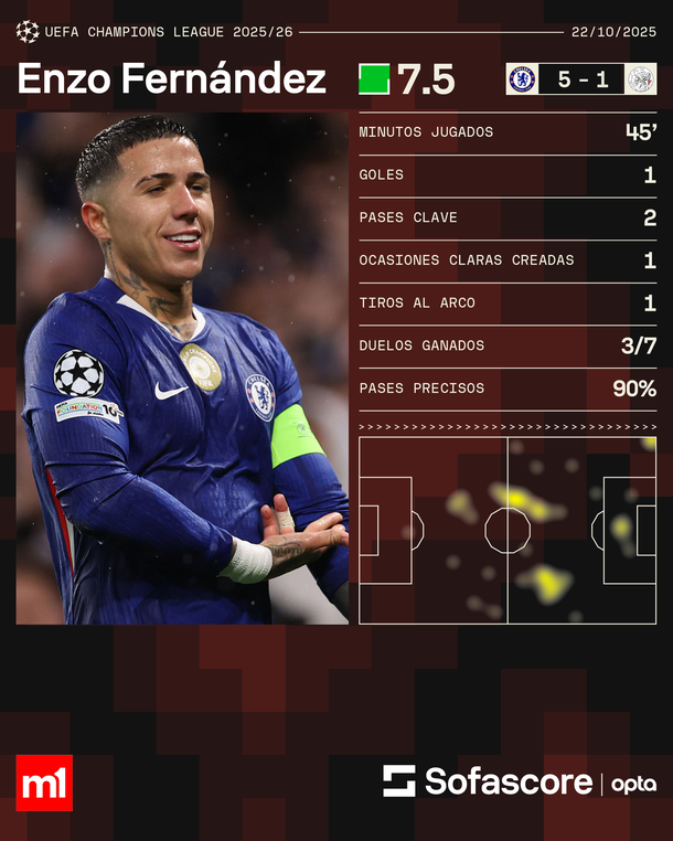 Los números de Enzo Fernández en el triunfo de Chelsea ante Ajax por la tercera fecha de la Champions League