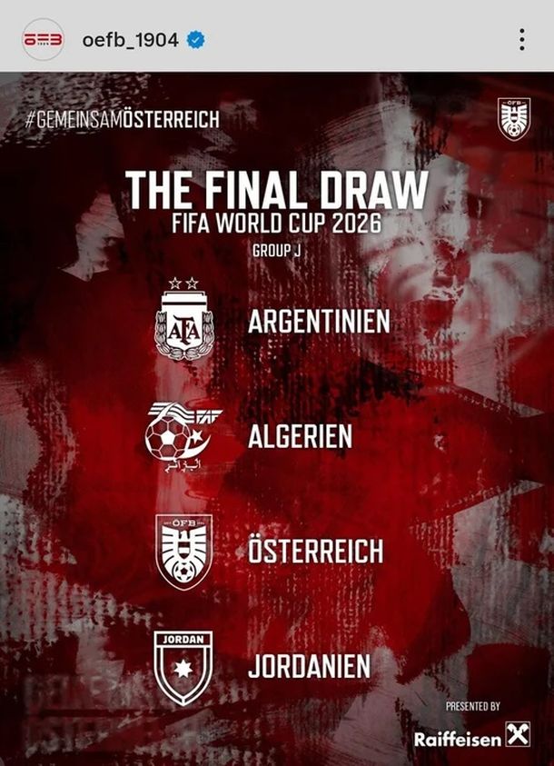 Es que la Asociación Austríaca de Fútbol subió una publicación sobre el Grupo J en donde omitió un grave error en el escudo de la Selección Argentina.
