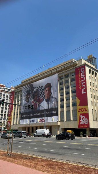 Como parte de las celebraciones por el 120 aniversario de la fundación del Automóvil Club Argentino (ACA), la institución se unió a YPF para instalar una gigantografía que homenajea a tres referentes del automovilismo argentino que corrieron en la Fórmula 1: Juan Manuel Fangio, Carlos Reutemann y Franco Colapinto.