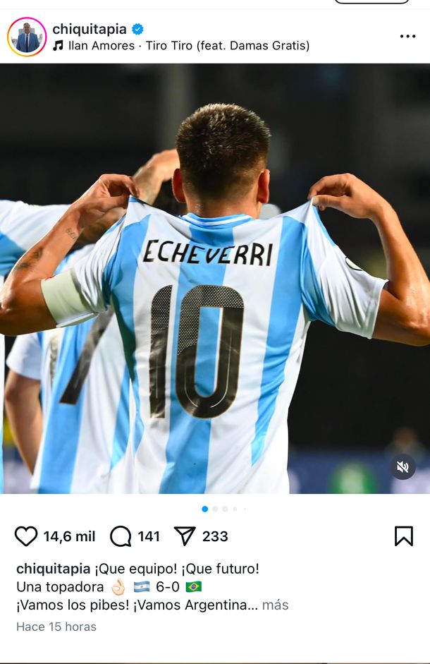 El presidente de la Asociación del Fútbol Argentino, Claudio Tapia, expresó su entusiasmo en redes sociales, destacando el desempeño del equipo juvenil. “Que equipo, que futuro. Una topadora, 6-0. Vamos los pibes, vamos Argentina”, escribió en una publicación de Instagram, acompañando el mensaje con los emoticones de una mano haciendo un círculo, la bandera argentina y la brasileña.