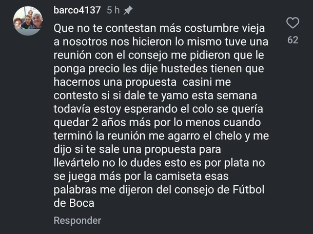 A través de Instagram, respondió a un usuario bostero y detalló lo ocurrido en una reunión con los dirigentes: “Nos pidieron que pongamos un precio, les dijimos que tenían que hacer una propuesta. Cascini me dijo ‘te llamo en la semana’, y sigo esperando”.