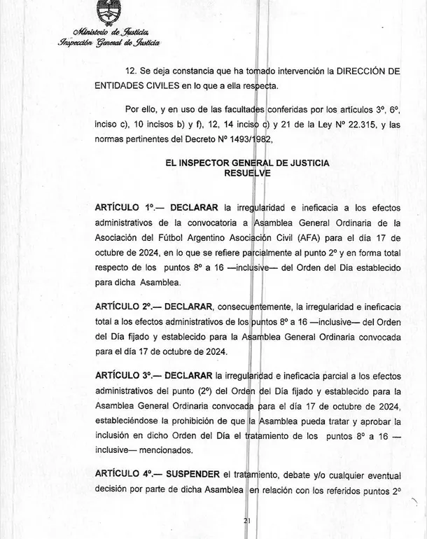 Esta publicación llega tras el fallo de la Inspección General de Justicia (IGJ) que impide que se lleven a cabo las elecciones que tendrían lugar el próximo 17 de octubre en la Asociación de Fútbol Argentino por supuesta "irregularidad e ineficacia a los efectos administrativos" de los comicios.