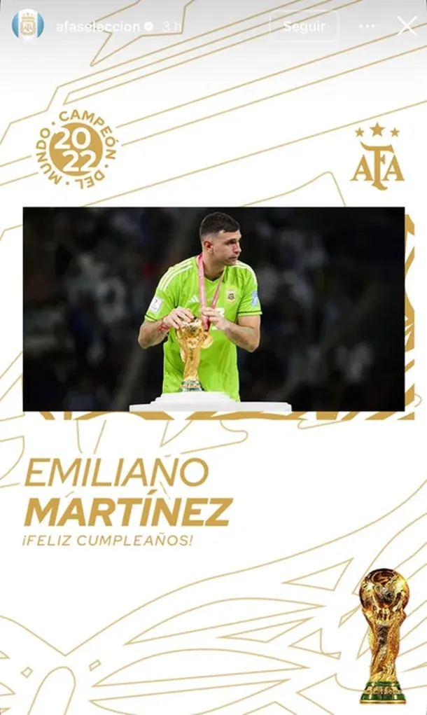 Emiliano Martínez celebra su cumpleaños número 33 con la Selección Argentina, que en su cuenta oficial saludó al arquero.