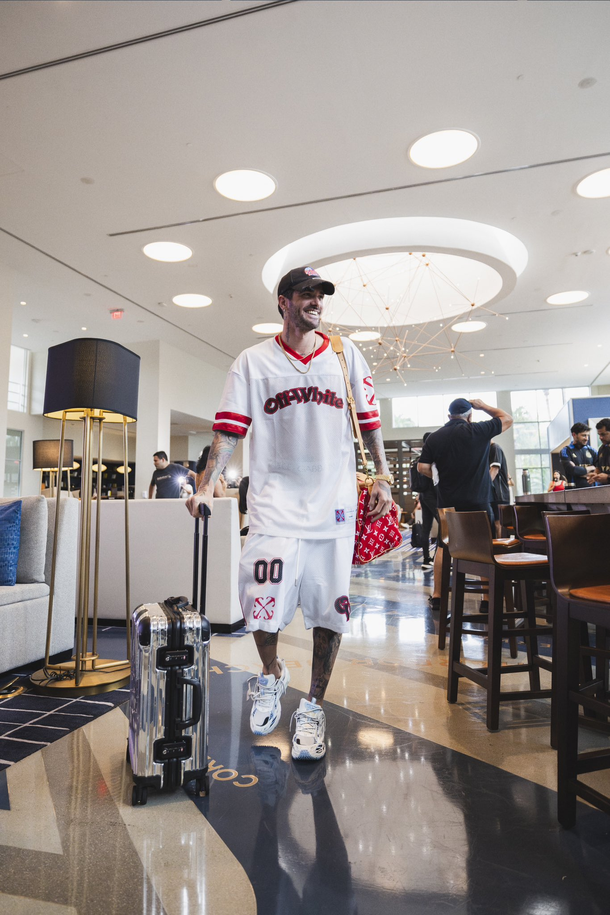 Rodrigo De Paul, mediocampista del Atlético Madrid, llegó a la concentración de la Selección Argentina en Miami y, como ya es habitual, su estilo único no pasó desapercibido. El futbolista sorprendió a todos con un llamativo conjunto oversize en blanco que incluía detalles en rojo en su camiseta y bermudas, una elección que no pasó desapercibida y que viene siendo la clara muestra de su amor por la moda.