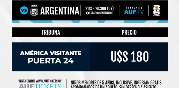 Las entradas para el partido entre la Celeste y la Albiceleste en Montevideo cuestan un tercio de lo que se paga en nuestro país para el duelo ante Brasil.