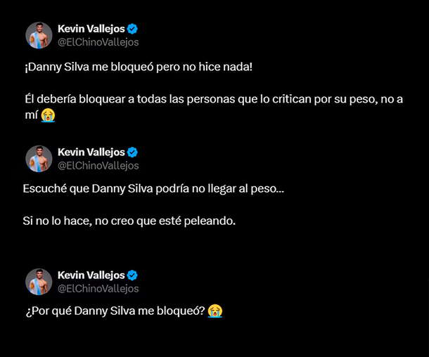 Vallejos, nacido en Mar del Plata y conocido como “Chino”, hizo públicas sus molestias a través de su cuenta de X, donde sorprendió a sus seguidores al comentar: “Danny Silva me bloqueó, ¡pero no hice nada! Debería bloquear a todos los que lo critican por su peso, no a mí”.