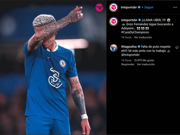 Ante esto, el medio brasileño hizo lo obvio y le pegó con dureza al argentino: "¡Llama un Uber! Enzo Fernández sigue buscando a Adeyemi”. La publicación en Instagram cosechó más de 300 mil likes en menos de un día.