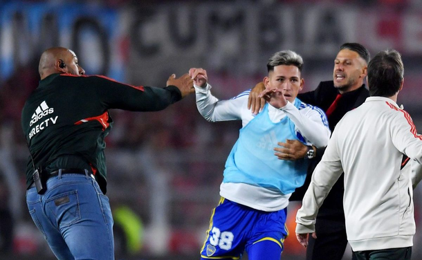 En medio del tumulto, intervino “La Roca”, encargado de seguridad del plantel riverplatense, intentando separar a los involucrados. Sin embargo, un colaborador del cuerpo técnico de la Lepra mendocina lo golpeó de manera directa en la cara, desatando un nuevo foco de violencia. Aunque “La Roca” intentó devolver el golpe, fue contenido antes de que la situación escalara aún más.