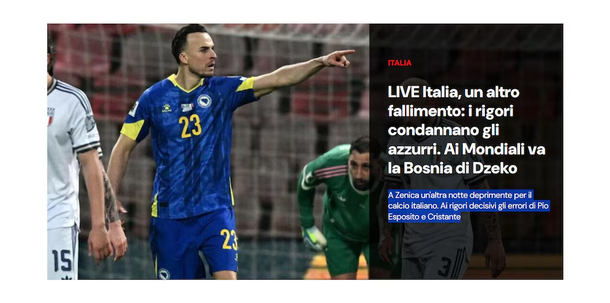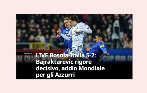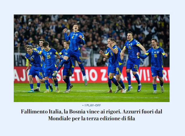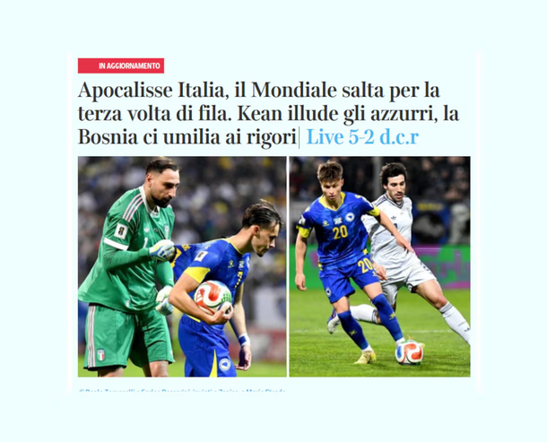 La nueva ausencia de Italia en una Copa del Mundo generó una reacción inmediata y contundente por parte de la prensa del país. Tras la eliminación en el repechaje ante Bosnia, que confirmó que la Azzurra no estará en el Mundial 2026 de Estados Unidos, México y Canadá, los principales medios italianos no dudaron en expresar su enojo y preocupación con durísimas críticas.