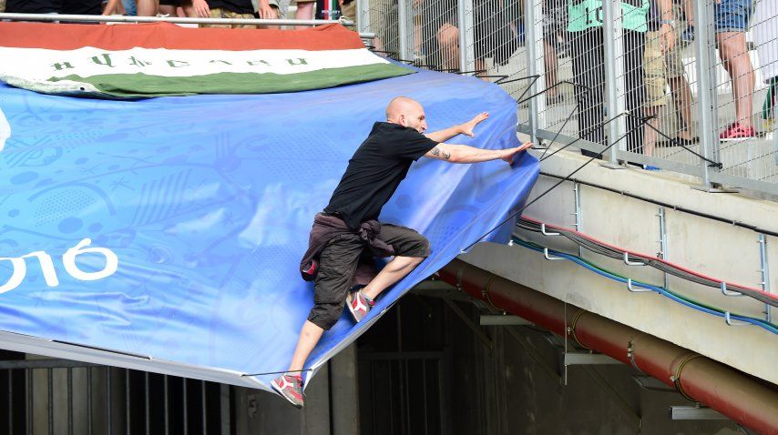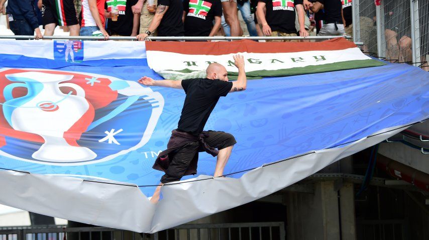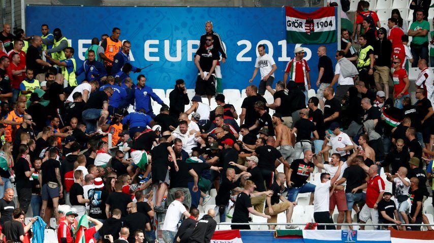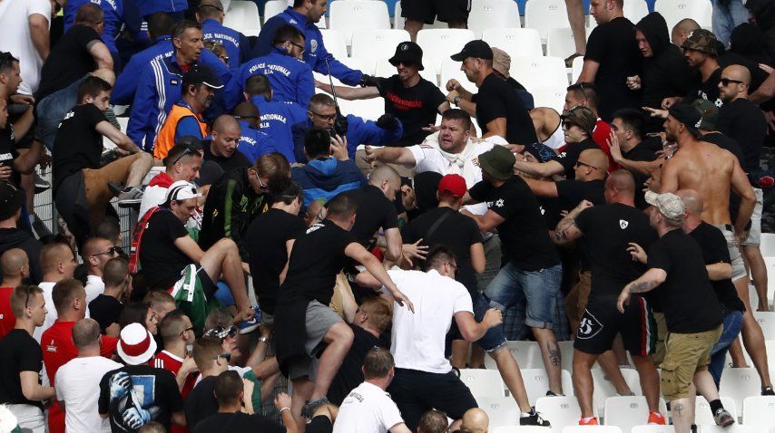 Fue en la tribuna del estadio Vélodrome de Marsella ocupada por los hinchas húngaros. Se enfrentaron a trompadas con efectivos policiales.