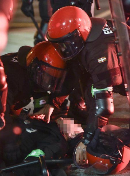 La prensa local informó que un policía de la Ertzaina perdió la vida tras sufrir un doble paro cardíaco. Los cinco arrestos fueron confirmados por un portavoz de la misma policía vasca.