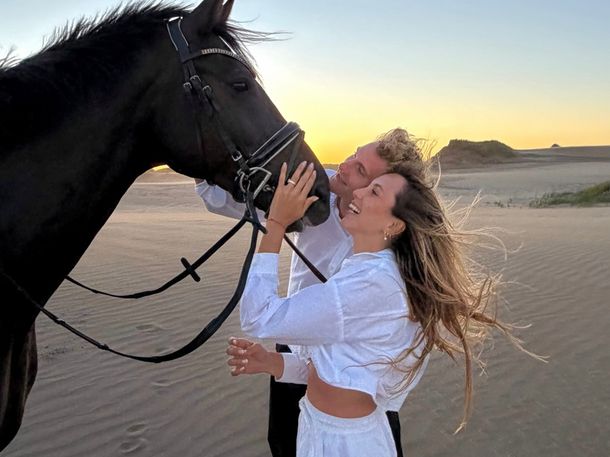 La romántica propuesta tuvo lugar en el marco de las vacaciones del deportista, aprovechando el receso con el club, a orillas del mar y con la presencia del caballo de su novia.