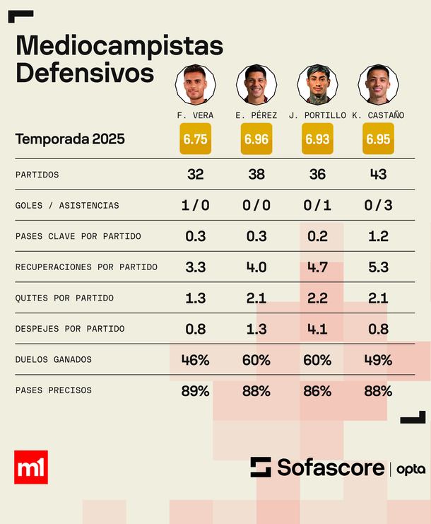 Si bien en la temporada 2025 Vera tuvo participación —32 partidos y 1.728 minutos disputados—, su rendimiento fue de mayor a menor. Completó apenas el 25% de los encuentros como titular y en el tramo final del campeonato perdió terreno, ingresando desde el banco en los últimos tres partidos.