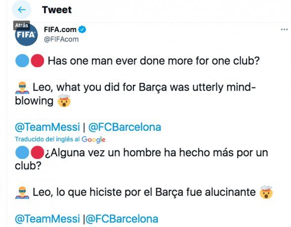 El posteo de la FIFA tiene la siguiente leyenda: "¿Alguna vez un hombre ha hecho más por un club? Leo, lo que hiciste por el Barça fue alucinante".