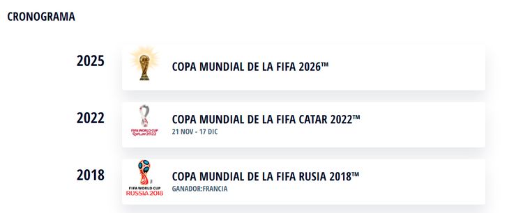 En un cronograma de eventos y fechas, a continuación de Qatar 2022 aparece “2025” como fecha para el Mundial que se disputará en Estados Unidos, Canadá y México, cuando de público conocimiento es que la fecha estipulada es 2026.
