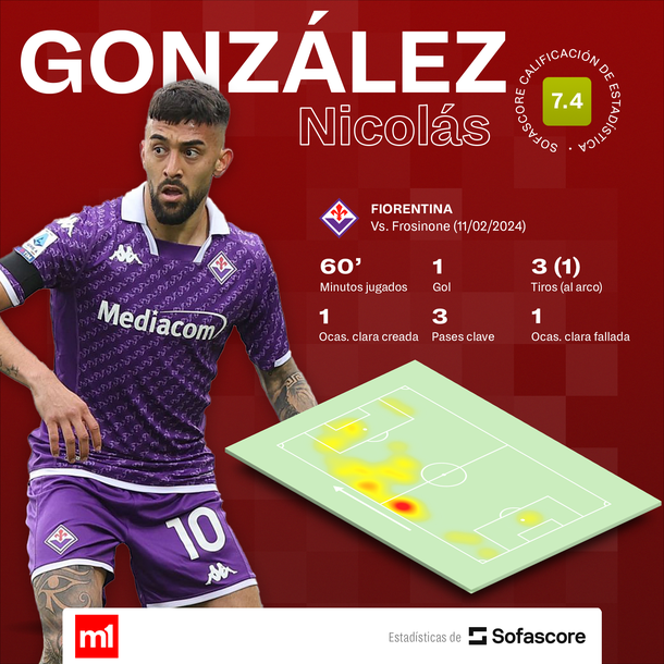 Fiorentina, con el aporte goleador de los argentinos Lucas Martínez Quarta y Nicolás González, venció este domingo como local a Frosinone por 5 a 1, en la continuidad de la 24ta. fecha de la Serie A del fútbol de Italia.
