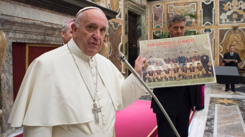 Jorge Bergoglio, reconocido hincha del Ciclón, recibió a los jugadores que mañana se enfrentarán en un amistoso cuya recaudación será destinada a ayudar a los damnificados por el terremoto que afectó a varias ciudades del centro de Italia.