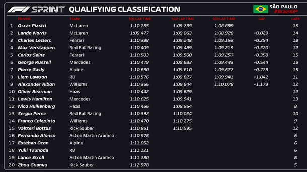 Parrilla de salida para la carrera sprint del Gran Premio de Brasil