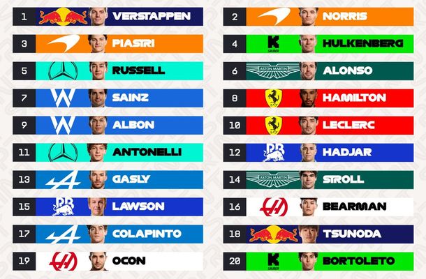La carrera, que otorgará puntos para el campeonato mundial de Fórmula 1 en la previa del GP que se correra el domingo, tendrá a Max Verstappen (Red Bull) largando desde la pole, por delante de los dos McLaren (equipo ya consagrado en el campeonato de constructores de este año) de Lando Norris y Oscar Piastri.