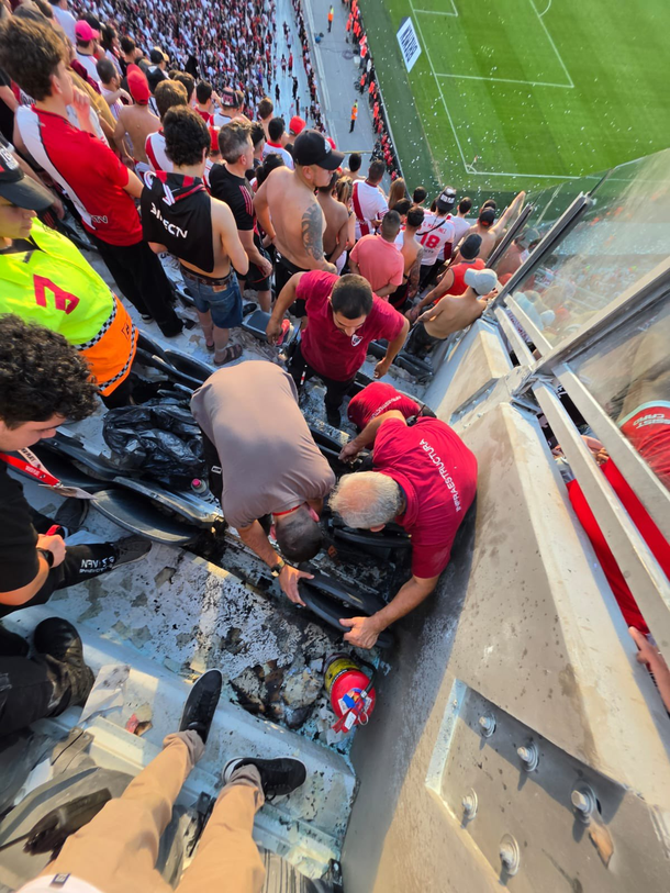 La situación obligó a los hinchas ubicados en el sector afectado a desplazarse rápidamente para evitar el contacto con el fuego. Afortunadamente, la intervención fue veloz: los propios simpatizantes intentaron sofocar las llamas en un primer momento; mientras que operarios del estadio acudieron al lugar con extintores y lograron controlar el foco en cuestión de segundos.
