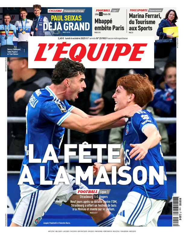 El fútbol francés vive un fenómeno argentino inesperado: Joaquín Panichelli y Valentín Barco se convirtieron en los protagonistas del momento en la Ligue 1 de Francia tras la goleada 5-0 del Racing de Estrasburgo frente al Angers. Ambos fueron destacados por el prestigioso diario deportivo L’Équipe, que los llevó a su tapa bajo el título “La fiesta en casa”.