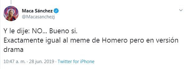 Conmemorando un famoso meme de Los Simpson, su respuesta fue: “Y le dije: NO... Bueno sí. Exactamente igual al meme de Homero pero en versión drama”.