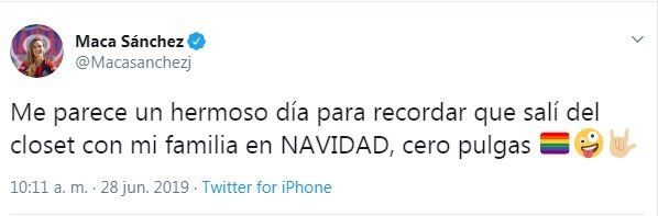 A través de su cuenta de Twitter, Maca –principal referente de la lucha por la profesionalización del fútbol femenino- relató su propia experiencia frente a sus familiares al “salir del closet”: “ (fue) en Navidad, cero pulgas”, recordó.