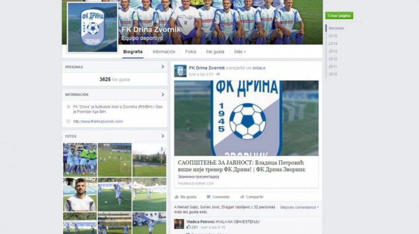 “El club de fútbol FK Drina Zvornik informa al público que, tras el análisis de la situación en el club y los resultados logrados en las diez primeras jornada de la BH Premijer League, se decidió despedir al entrenador del primer equipo Vladica Petrovic”, fue lo anunciado en el fan page oficial.