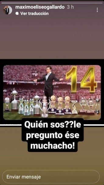 En el día en el que el Muñeco cumple ocho años al mando de River, Máximo subió a sus redes sociales una foto de su hijo con los 14 títulos que ganó en la institución como DT y lo acompañó con una polémica frase: "¿Quién sos? Le preguntó ese muchacho".
