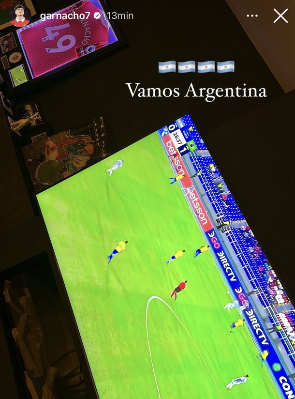 A pesar de la diferencia horaria y que en Inglaterra ya estaba pasada la medianoche, Alejandro Garnacho sorprendió a todos en sus redes sociales y publicó una imagen bancando al equipo de Javier Mascherano.