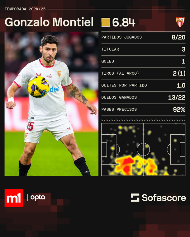 Las estadísticas de Gonzalo Montiel en la temporada 2024/2025: