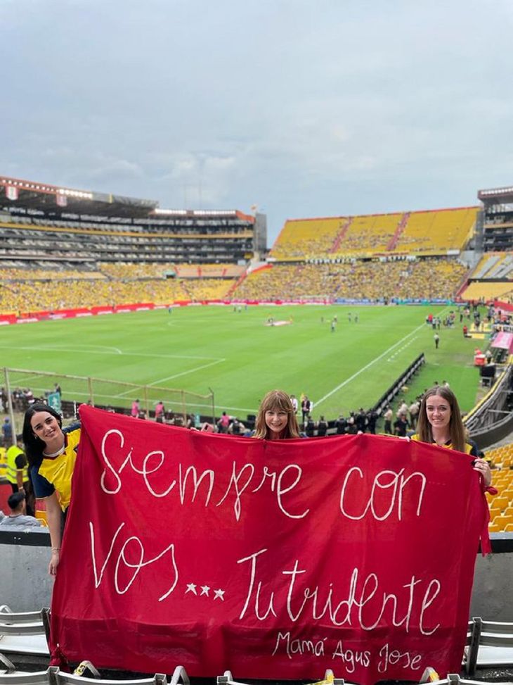 Alfaro llevó a Ecuador a una Copa del Mundo. Su mujer y sus dos hijas se lo reconocieron. Pese a enfrentar a Argentina, acompañaron al rafaelino con una bandera.