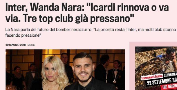 Según publicó el diario La Gazzetta dello Sport, Wanda declaró que "Icardi renueva con el Inter o se va del club; tiene propuestas de tres grandes equipos de Europa".