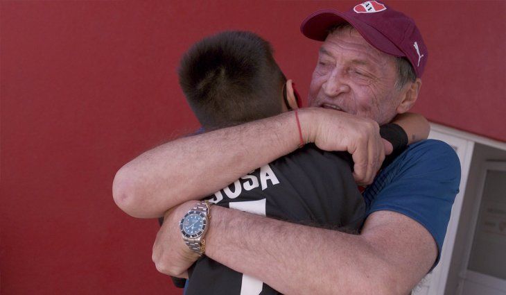 Ya sobre el verde césped se fundieron en un abrazo y pudieron tomarse algunas fotos que fueron compartidas en las redes oficiales del club.