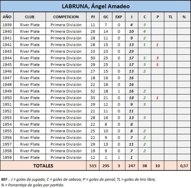 Un estudio del Centro para la Investigación de la Historia del Fútbol corrigió errores de registros anteriores y estableció que Labruna convirtió 295 goles, dos más que el emblemático delantero paraguayo.