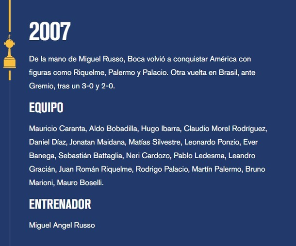 Insólito error en la web oficial de Boca: referente de River aparece como campeón de la Copa Libertadores 2007