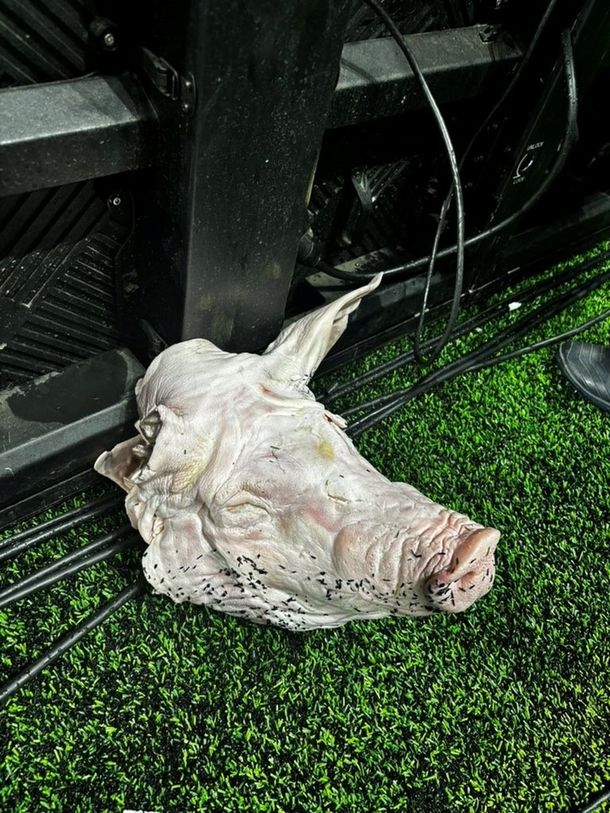Sin embargo, lo que debería haber sido una celebración se vio empañado por un episodio grotesco y preocupante: a los 28 minutos de juego, un aficionado lanzó una cabeza de cerdo al campo, deteniendo el partido momentáneamente.