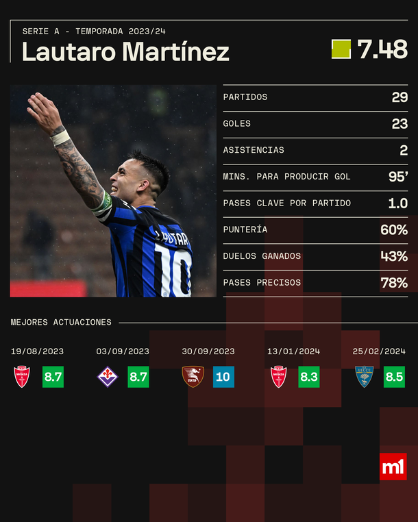 Las estadísticas de Lautaro Martínez en el título del Inter