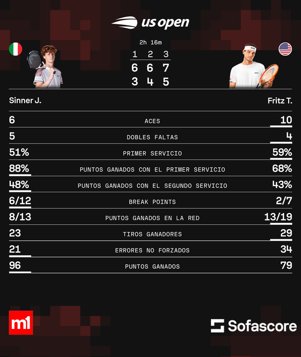 Fritz, por su parte, no pudo cortar con la sequía de los estadounidenses en el US Open. La última vez que un local se quedó con el título en el último Grand Slam de la temporada fue en 2003, cuando lo hizo Andy Roddick.