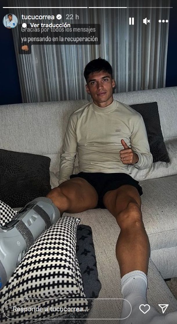Además, posteó una foto con una bota ortopédica en su pierna derecha y dejó un mensaje de agradecimiento para todos los que se preocuparon. "Gracias por todos los mensajes. Ya pensando en la recuperación", escribió el Tucu.