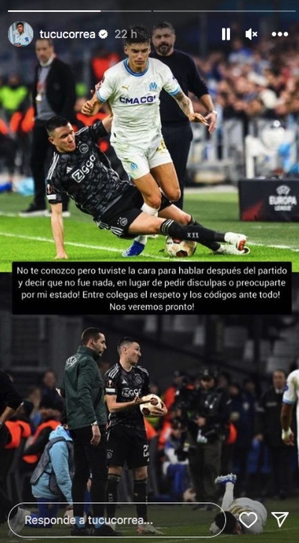 Joaquín "el Tucu" Correa fue víctima de una infracción por parte del jugador neerlandés Steven Berghuis en la tarde del jueves, durante el encuentro entre el Olympique Marsella y el Ajax en el Velódromo por la quinta fecha de la fase de grupos de la UEFA Europa League. El Tucu sufrió una lesión en su tobillo derecho y escribió un durísimo mensaje contra su rival, quien fue expulsado tras la falta.