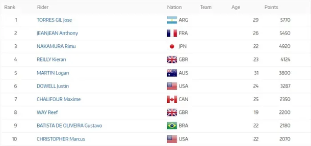 José "Maligno" Torres alcanzó la cima del ranking mundial de Freestyle Park tras un año lleno de logros deportivos, que incluyó una medalla de oro olímpica en los Juegos de París 2024 y el subcampeonato mundial en Abu Dabi. Según la Unión Internacional de Ciclismo (UCI), el ciclista argentino lidera el ranking con 5770 puntos, seguido por el francés Anthony Jeanjean (5450) y el japonés Rimu Nakamura (4920).