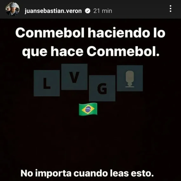 Al conocerse la noticia, Verón apuntó directamente contra la Conmebol mediante sus redes sociales. "Conmebol haciendo lo que hace Conmebol. No importa cuándo leas esto”, escribió en sus historias de Instagram.