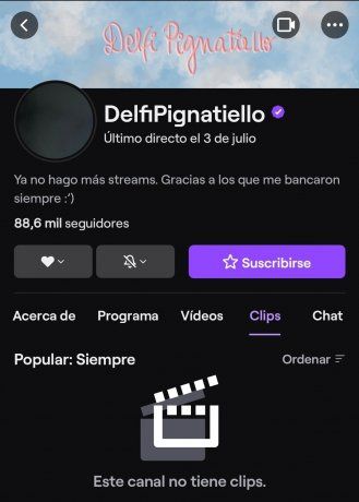 En tanto que en la plataforma Twitch borró todo el contenido que había quedado visible y dejó un aviso para quienes la seguían: “Ya no hago más streams. Gracias a los que me bancaron siempre”. Además, puso en privado su cuenta de Instagram (subió fotos ayer) y restringió comentarios.