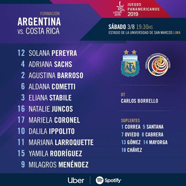 La Selección argentina de fútbol femenino buscará sumar su tercera victoria consecutiva en los Juegos Panamericanos de Lima. Las jugadoras dirigidas por Carlos Borrello se enfrentan a Costa Rica desde las 19.30 en lo que será la última fecha de la fase de grupos, con el objetivo de quedar primeras en la zona B.
